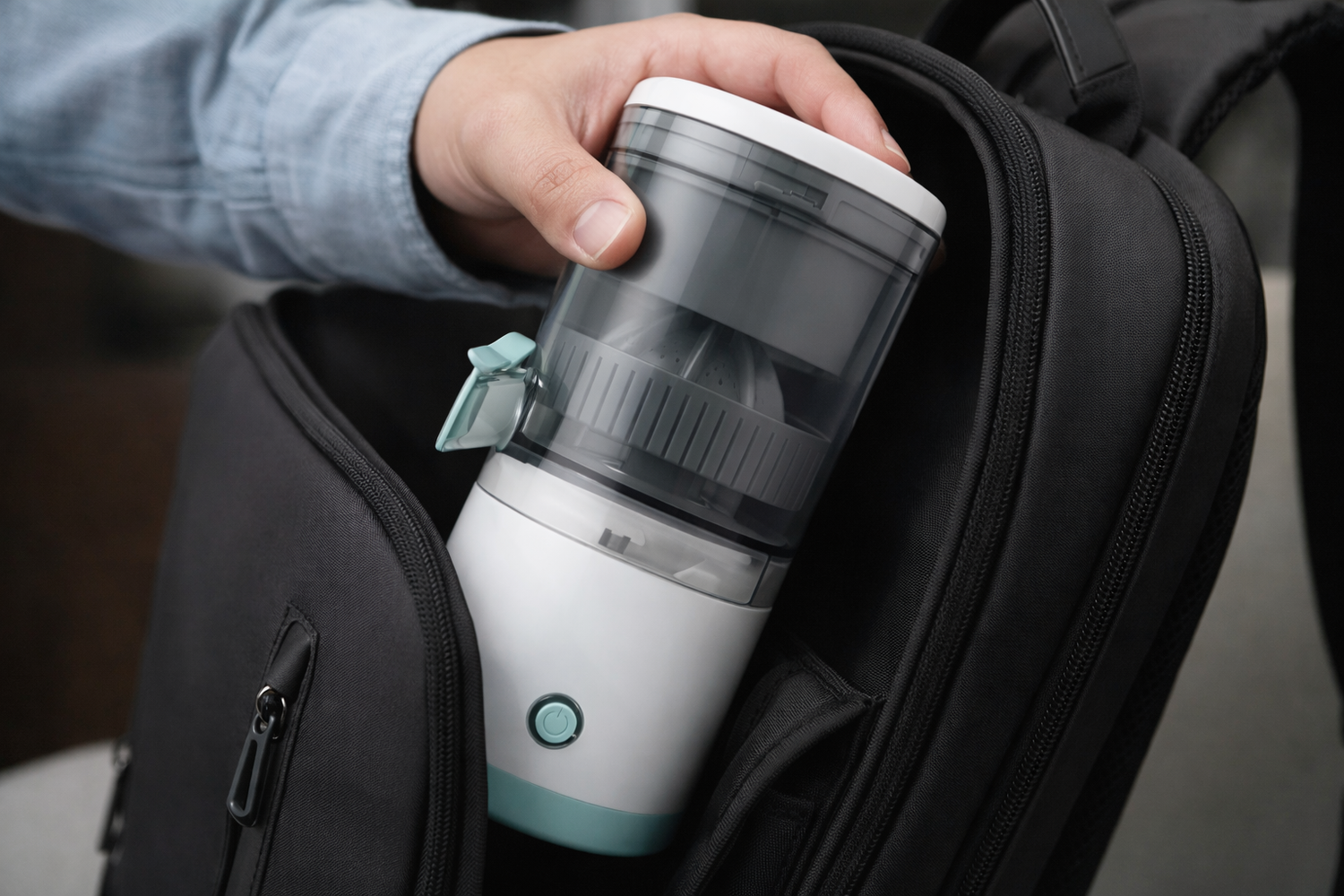 This portable USB juicer is designed for real life. It fits comfortably in your hand, takes up almost no space, and goes wherever you do. Just press a button and pour fresh juice directly into your glass — no cords, no mess, no stress.